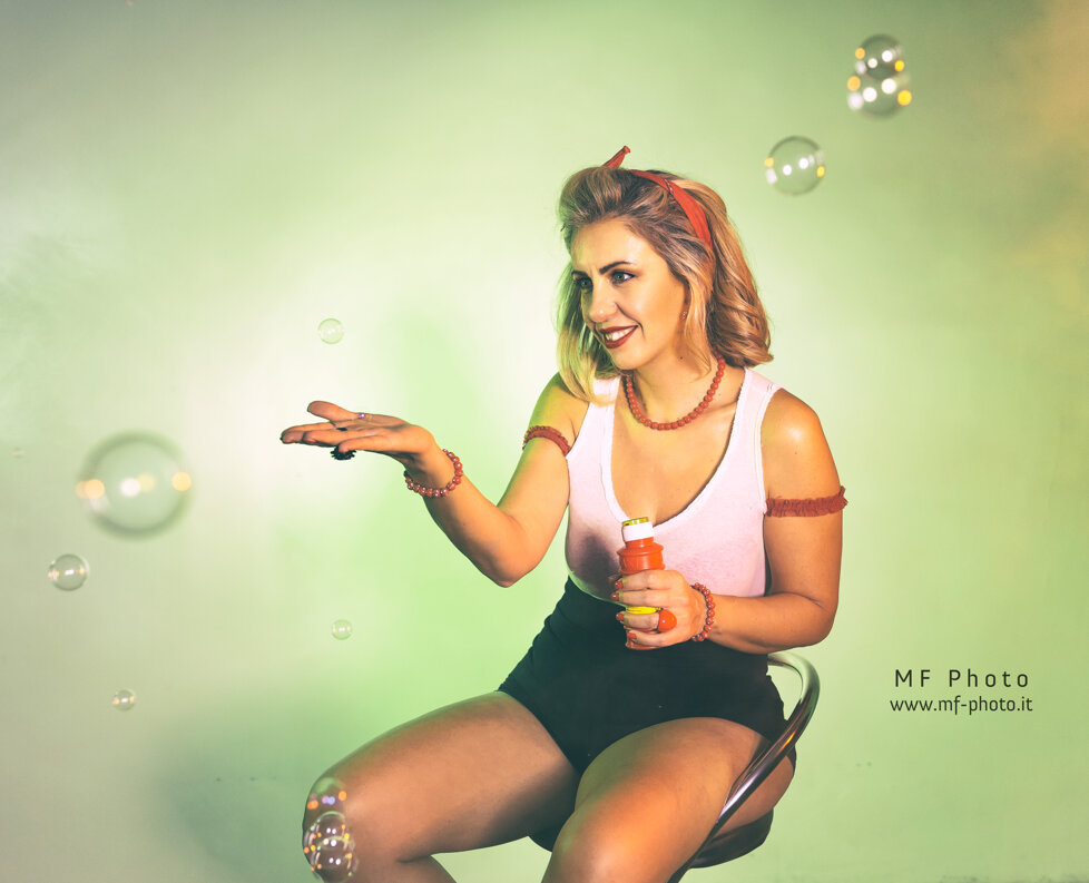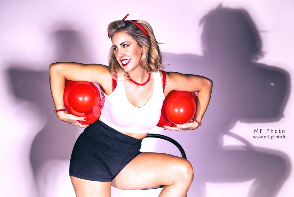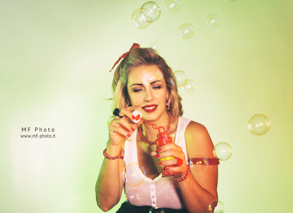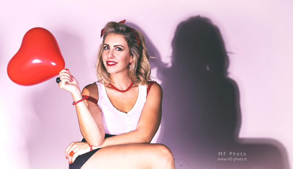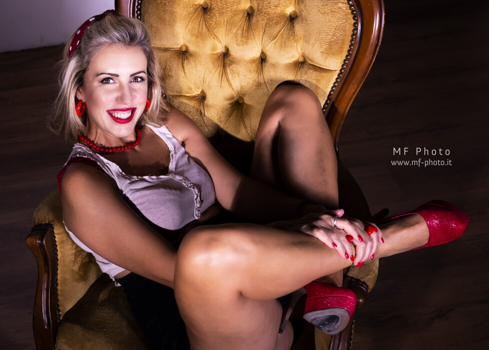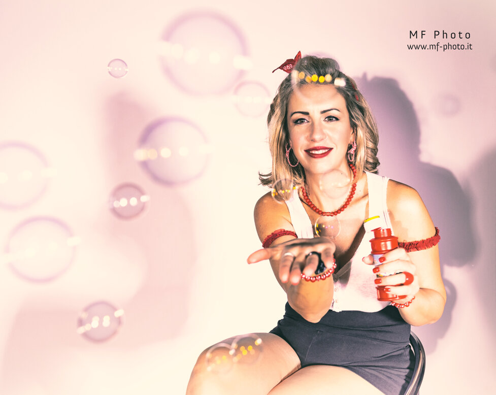 Massimo Fodonipi è un eccellente e creativo fotografo con cui ho avuto il piacere di collaborare finora solo una volta, ma insieme siamo riusciti a trovare una bella energia per mettere in atto uno shooting in stile Pin-up. E' stato estremamente divertente vestire i panni di una donna di quelle che popolavano le riviste americane o gli spot di prodotti di consumo nell'immediato dopoguerra, di quelle che facevano sognare i soldati anche durante la guerra e davano loro la speranza di un momento lieto tra un bombardamento e l'altro. Magari le donne in quel momento venivano considerate un "oggetto" , ma credo fosse affidato a queste donne anche l'incarico di rappresentare un simbolo vero e proprio di cambiamento e di speranza. Io ho trovato divertente dare un'immagine di Pin-up non solo attraente, ma anche giocosa. Spero vi piacciano, piuttosto mi farebbe piacere capire se vi sono piaciute, scrivetemelo in fondo alla pagina.