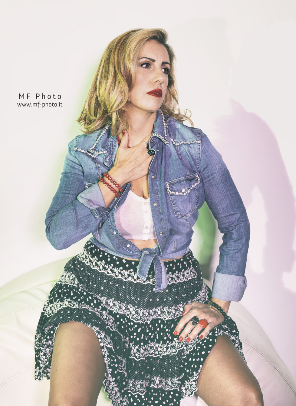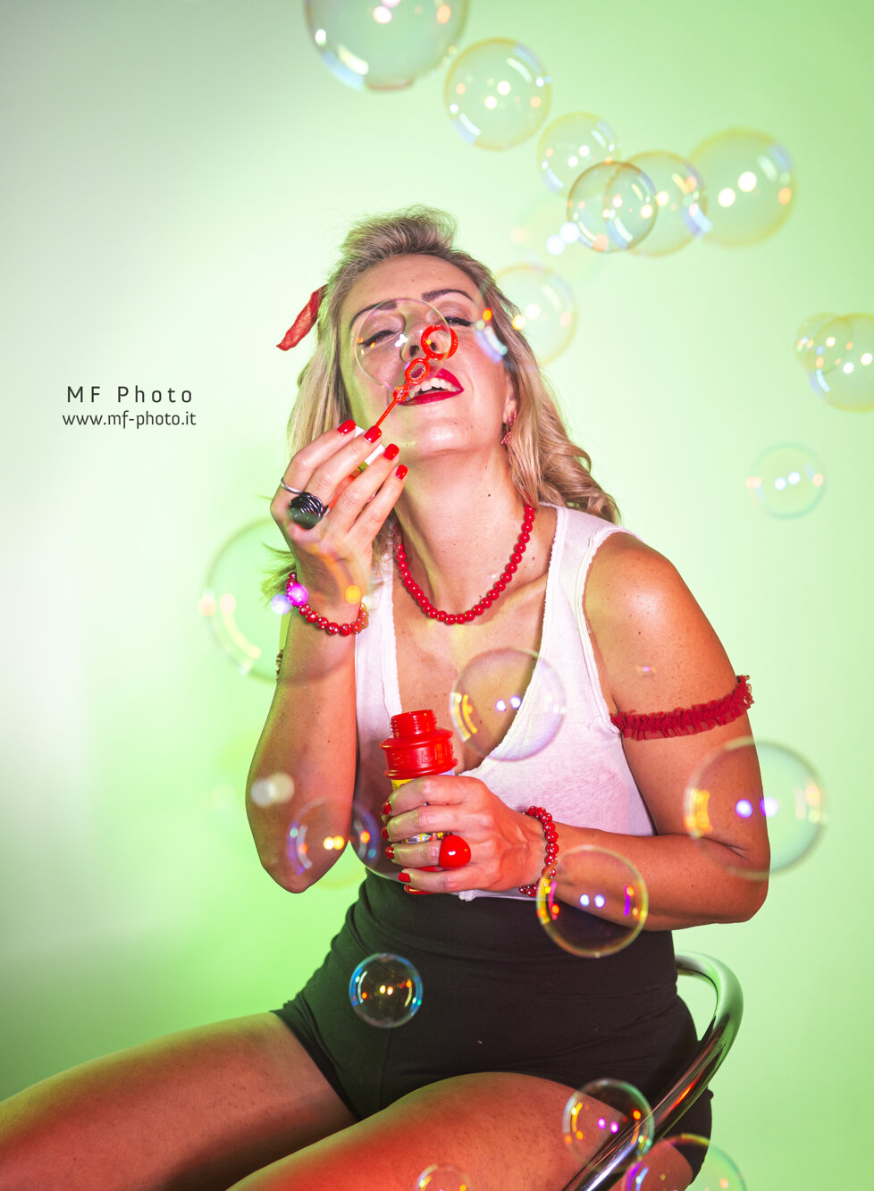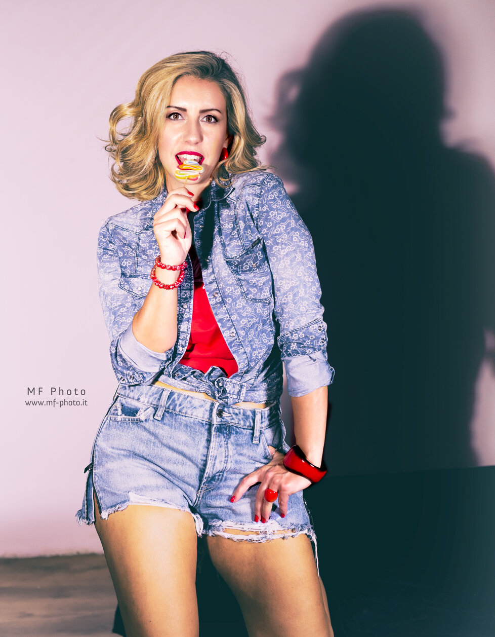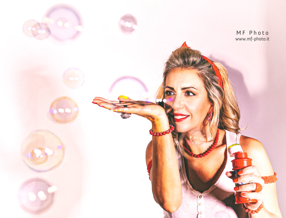 Massimo Fodonipi è un eccellente e creativo fotografo con cui ho avuto il piacere di collaborare finora solo una volta, ma insieme siamo riusciti a trovare una bella energia per mettere in atto uno shooting in stile Pin-up. E' stato estremamente divertente vestire i panni di una donna di quelle che popolavano le riviste americane o gli spot di prodotti di consumo nell'immediato dopoguerra, di quelle che facevano sognare i soldati anche durante la guerra e davano loro la speranza di un momento lieto tra un bombardamento e l'altro. Magari le donne in quel momento venivano considerate un "oggetto" , ma credo fosse affidato a queste donne anche l'incarico di rappresentare un simbolo vero e proprio di cambiamento e di speranza. Io ho trovato divertente dare un'immagine di Pin-up non solo attraente, ma anche giocosa. Spero vi piacciano, piuttosto mi farebbe piacere capire se vi sono piaciute, scrivetemelo in fondo alla pagina.