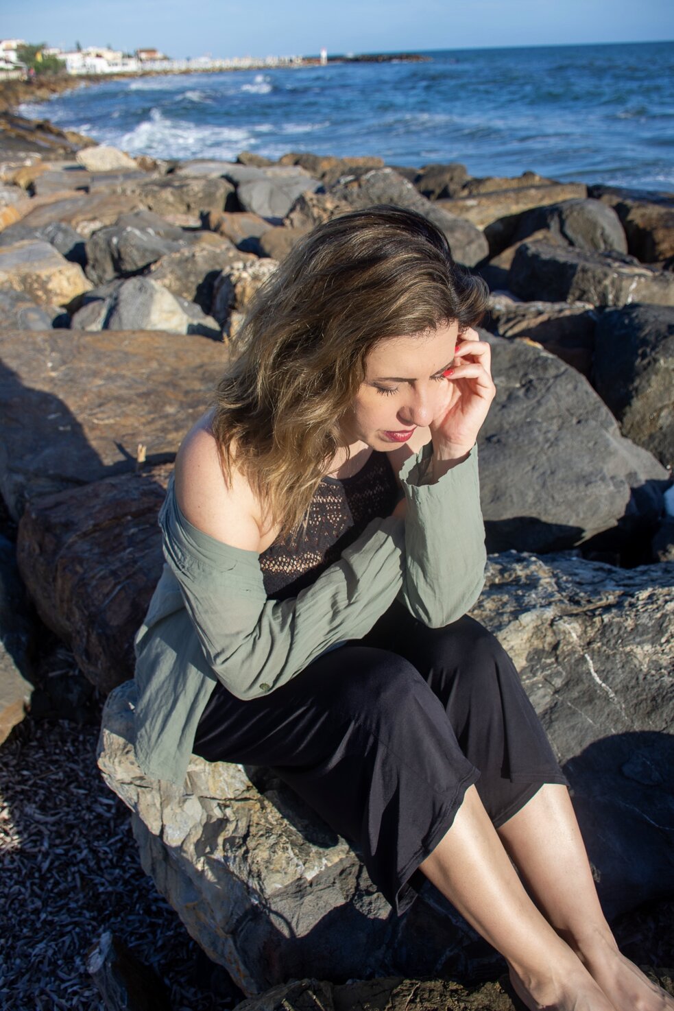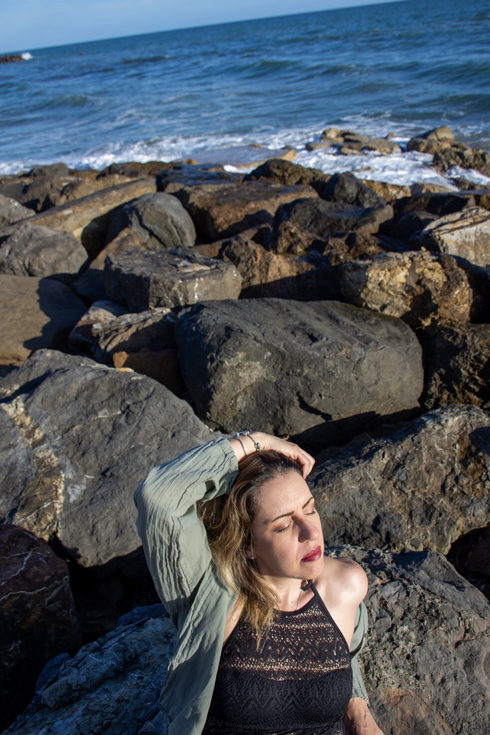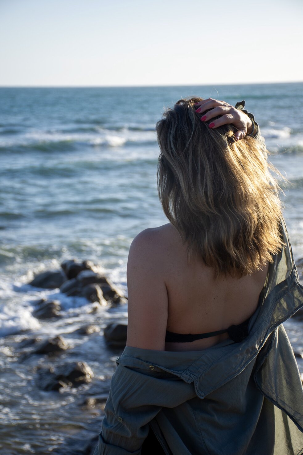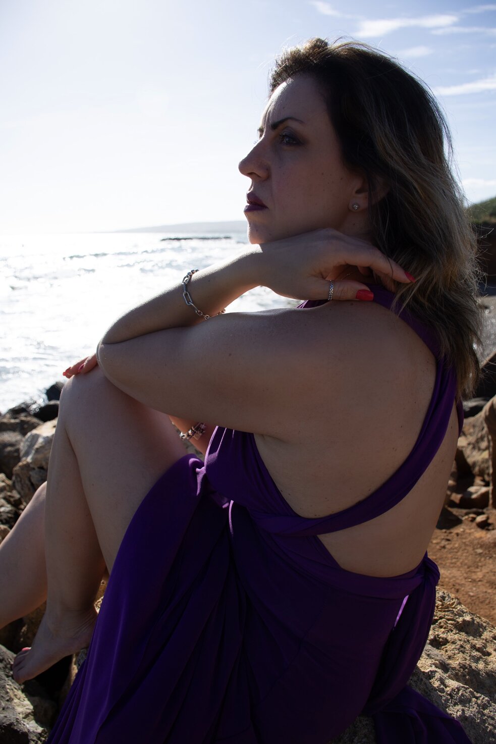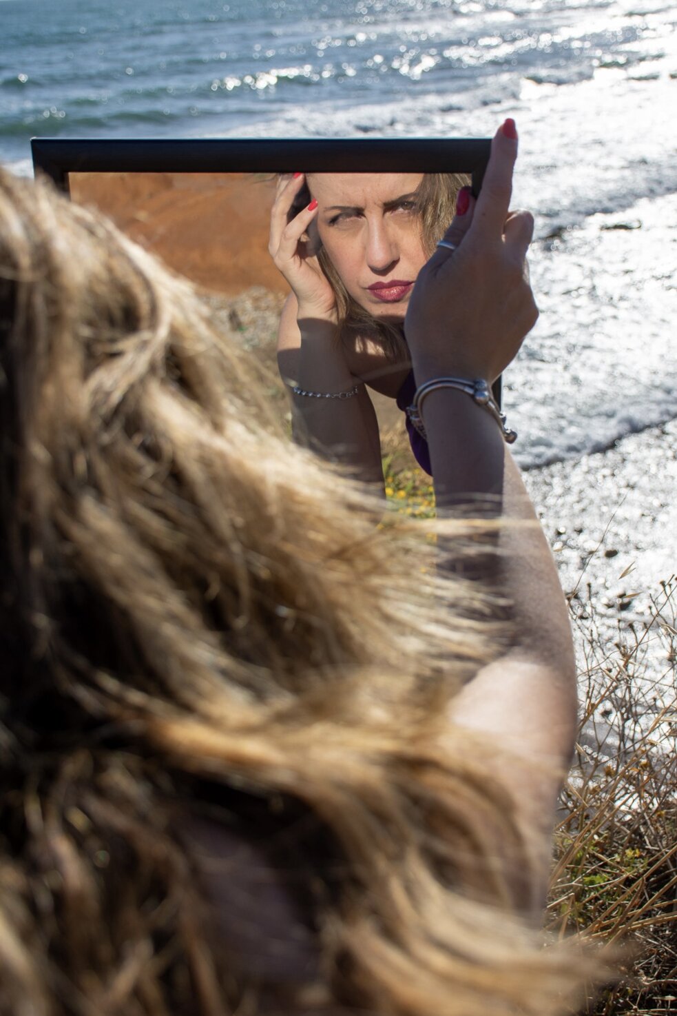 In questa serie di scatti che ho intitolato "Riflessi e riflessioni", abbiamo sperimentato un pò, con l'uso di uno specchio, nel tentativo di rappresentare la bidimensionalità della vita, ciò che si vede e quindi appare e ciò che sta dietro lo specchio che c'è, ma non si vede. Abbiamo poi rappresentato le emozioni che evoca il mare, che personalmente mi riporta con la mente ad un profondo senso di libertà, ma anche ad un'intensa nostalgia per il mio passato da bambina, per i momenti belli che non torneranno, per quelli che ancora devono arrivare.. spero vi piacciano e che abbiate voglia di lasciarmi un feedback in fondo.